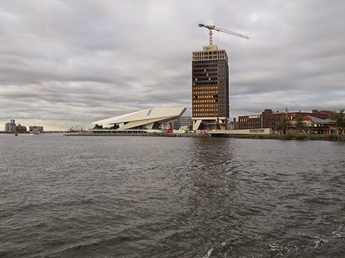 | 2012年オープンした映画博物館 EYEの全景(白い建物) 建築デザインは、ドイツのポルシェ博物館などを手がけたDelugan Meisslのもの。 |